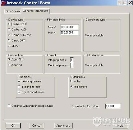 假設 PCB 板的各層已經(jīng)添加完畢.在 Allegro 的主菜單 ManufactureArtwork 下選 General Parameters,并設定如下圖