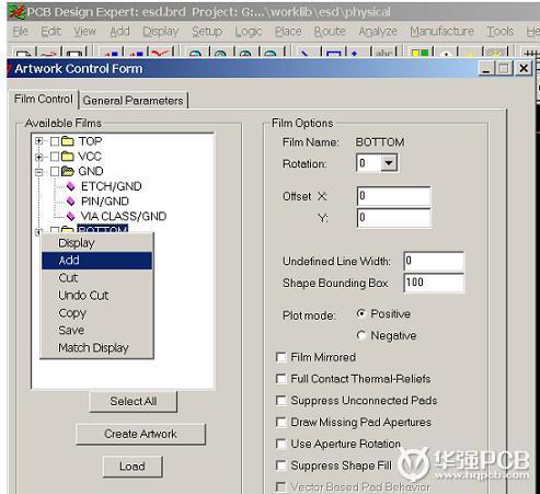 1. 在 ALLEGRO 中,選取 MANUFACTURE-ARTWORK 命令:將光標移到展開窗口右邊的”+”號,按右鍵,如圖: