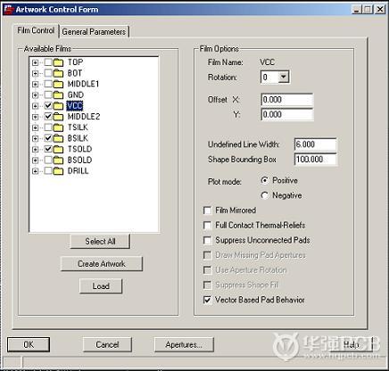 同時窗口由面的選項可根據(jù)各層具體情況選擇,(如無寬度的線生成光繪時的默認寬度,是否是反片…).如下圖: