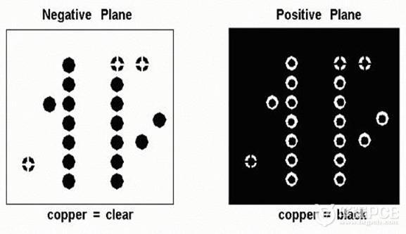 負(fù)片:正好克服正片移動(dòng)零件或貫孔時(shí)需要重鋪銅箔的缺點(diǎn),過孔貫穿負(fù)片層時(shí)程序根據(jù)網(wǎng)絡(luò)連接判斷采用(Thermal Relief)與該層連接還是用(Anti-Pad)與該層隔開。