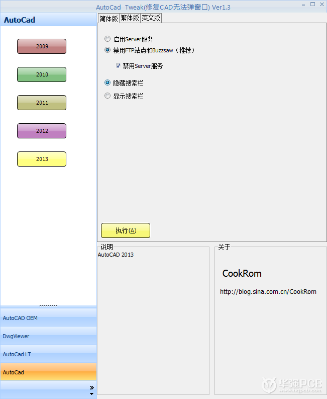 1.增加支持CAD2013 簡體、英文、繁體版本