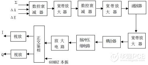 視頻接收組合是由I/Q正交鑒相器和視頻放大器組成。其中應(yīng)用數(shù)控衰減器實時調(diào)整各路本振信號的相位,以達到補償接收機系統(tǒng)相位一致性的目的。最后輸出反射和應(yīng)答的12路I/Q信號以及反射和應(yīng)答的檢波信號。