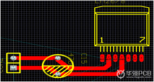 如果大家嫌這個(gè)不好看,按下圖處理也是正確的,你們也可以發(fā)現(xiàn)在一些PCB設(shè)計(jì)中也會用到下面的處理方式。