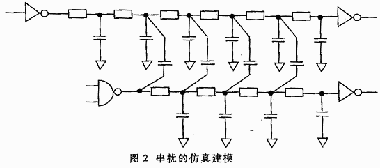 當幾條高速信號并行走線且這些信號線之間的距離很近時,就不能忽略串擾對系統(tǒng)的影響。兩條并行的信號線之間的串擾可以用圖2來建模,圖中“非門”輸出線上的信號會在“與非門”的輸出線上產(chǎn)生干擾。反過來,“與非門”輸出線上的信號也會在非門輸出線上產(chǎn)生干擾。從圖中可以看到:如果兩條并行線之間的距離越小,并行線并行的長度越長,則并行線間的感性耦合、容性耦合就越大,串擾也就越大。從減小感性耦合和容性耦合的角度來看,消除串擾的最有效的方法是增大并行線間的間距,同時盡量減小并行線的并行長度。當然也可以改變印制板上的絕緣介質特性參數(shù)來減小這種耦合,以達到減小串擾的目的,但這可能會增加制板的費用。