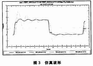 提取SD_DQlO(連接Cyclone II的59引腳和HY57V561620的45引腳),SD_DQll(連接Cyclone II的58引腳和HY57V561620的47引腳),SD_DQ-l2(連接CycloneII的57引腳和HY57V561620的48引腳)這三個網(wǎng)絡(luò)來做它們之間的串?dāng)_仿真。其中,SD_DQll作為被攻擊網(wǎng)絡(luò),SD_DQlO和SD_D-Ql2作為攻擊網(wǎng)絡(luò)。它們的拓?fù)浣Y(jié)構(gòu)和仿真波形如圖6、圖 7所示(傳輸線的并行耦合長度L=1000 mil,間距P=5 mil)。