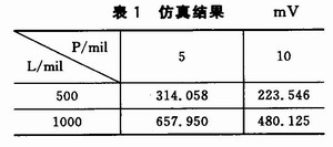 仿真波形如圖8所示。由圖7可以看出串?dāng)_對于被攻擊網(wǎng)絡(luò)的影響還是很大的,串?dāng)_值Crosstalk=657.95 mV串?dāng)_的大小與傳輸線的并行耦合長度L和間距P有關(guān),耦合長度越短,間距越大,串?dāng)_就越小。仿真結(jié)果如表1所列。