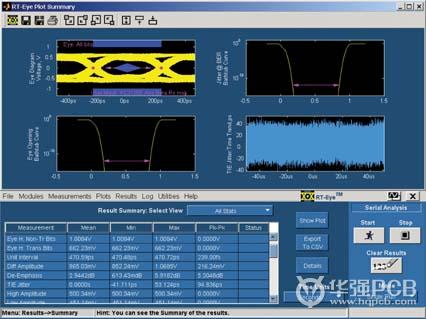 目前這個(gè)軟件可以完成光纖通道信號(hào)大部分的測(cè)試項(xiàng)目,如眼圖、抖動(dòng)、上升時(shí)間、下降時(shí)間、eye height、eye width、Jitter@BER、Dj、Rj、eye opening@BER、速率、UI,還可以畫(huà)浴盆曲線、統(tǒng)計(jì)圖、直方圖等。圖2為實(shí)際2.125GHz光纖通道信號(hào)的測(cè)試結(jié)果,圖3是2.5GHz的PCI Express總線信號(hào)的測(cè)試結(jié)果。-- -在這里要提醒的是以下幾點(diǎn),一是圖案長(zhǎng)度的設(shè)置,二是圖案類型的選擇,三是鎖相環(huán)濾波器帶寬的選擇,四是BER要求的數(shù)據(jù)量。