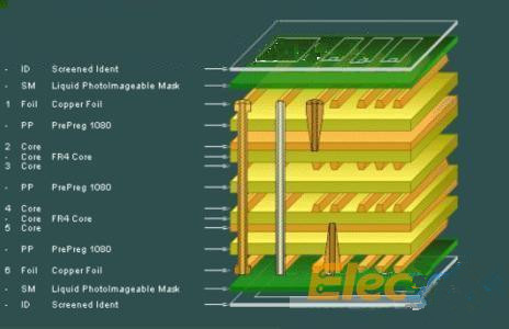 如果4層板上的元件密度比較大,則最好采用6層板。但是,6層板設(shè)計(jì)中某些疊層方案對電磁場的屏蔽作用不夠好,對電源匯流排瞬態(tài)信號的降低作用甚微。第一例將電源和地分別放在第2和第5層,由于電源覆銅阻抗高,對控制共模EMI輻射非常不利。不過,從信號的阻抗控制觀點(diǎn)來看,這一方法卻是非常正確的。