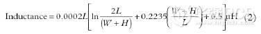 式(2)示出了計算印制線電感(Inductance)的公式。參見圖6。