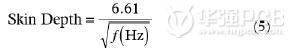 在高頻段,必須考慮一種稱為“趨膚效應(yīng)”的現(xiàn)象。趨膚效應(yīng)會引起電流流向?qū)Ь€的外表面——結(jié)果會使得導(dǎo)線的橫截面變窄,因此使直流(DC)電阻增大。雖然趨膚效應(yīng)超出了本文討論的范圍,這里還是給出銅線中趨膚深度(Skin Depth)的一個很好的近似公式(以cm為單位):