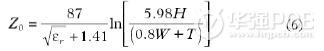 公式(6)可以用于計算一塊FR4板的特征阻抗。