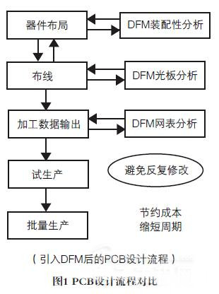 摘要:面對(duì)電子產(chǎn)品向小型化、高密度和高速度發(fā)展,PCB設(shè)計(jì)的復(fù)雜程度大大增加,如何有效地對(duì)復(fù)雜PCB設(shè)計(jì)進(jìn)行全面的質(zhì)量控制是我們面臨的一個(gè)課題。闡述了引入VALOR的Trilogy 5000軟件后,對(duì)產(chǎn)品PCB設(shè)計(jì)的全流程進(jìn)行DFM(可制造性分析技術(shù))應(yīng)用的過程,并與傳統(tǒng)的PCB設(shè)計(jì)和檢查方法進(jìn)行了比較。該P(yáng)CB設(shè)計(jì)審查機(jī)制可協(xié)助設(shè)計(jì)、工藝、制造和質(zhì)量檢查人員進(jìn)行產(chǎn)品全生命周期過程的質(zhì)量控制,作為PCB設(shè)計(jì)完成到投產(chǎn)前進(jìn)行自動(dòng)評(píng)審的有力工具,它提高了PCB設(shè)計(jì)的一次成功率,縮短了產(chǎn)品的研制周期。 隨著電子產(chǎn)品的高速發(fā)展,PCB設(shè)計(jì)中已大量選用BGA、QFP、PGA和CSP等高集成度器件,PCB的復(fù)雜程度也大大增加,隨之而來的PCB的設(shè)計(jì)和制造難、測(cè)試?yán)щy、焊接不良、器件不匹配和維修困難等生產(chǎn)問題。這樣導(dǎo)致整個(gè)產(chǎn)品工期延誤,研制周期加長(zhǎng),成本增大,產(chǎn)品返修率高,并且產(chǎn)品可能存在質(zhì)量隱患。這樣的產(chǎn)品同時(shí)更無法滿足軍工產(chǎn)品時(shí)間短、高可靠和高穩(wěn)定性的要求。 在實(shí)際設(shè)計(jì)生產(chǎn)過程中,我們通過對(duì)VALOR軟件Trilogy 5000 DFM功能的應(yīng)用,引入“可制造性設(shè)計(jì)”理念,將產(chǎn)品設(shè)計(jì)質(zhì)量重心前移。在設(shè)計(jì)階段融入制造規(guī)則,建立新的PCB設(shè)計(jì)流程,如圖1所示。以減少設(shè)計(jì)的變更帶來的周期延長(zhǎng),保證生產(chǎn)質(zhì)量和效率。在制造前期解決或發(fā)現(xiàn)所有可能的質(zhì)量隱患,將產(chǎn)品研制的迭代次數(shù)降到最低,減少成本,提高產(chǎn)品的市場(chǎng)競(jìng)爭(zhēng)力。也使得產(chǎn)品質(zhì)量與所用的設(shè)計(jì)軟件無關(guān),與設(shè)計(jì)人員的水平無關(guān),讓企業(yè)進(jìn)入規(guī)范化管理。