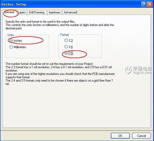1): General 選項中通常選擇英制 Inches 2:5格式(其實這里選擇哪一種都無所謂但是因為PCB生