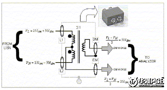 當(dāng)LISN切換時(shí),可以由下式得出噪聲電壓值: