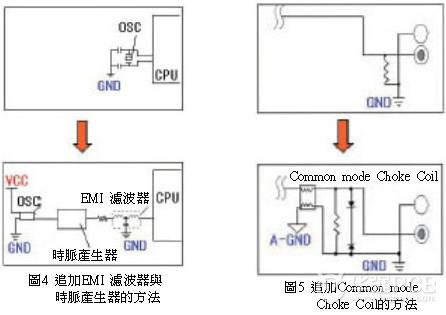 ?CPU的頻率線(Clock Line)追加設(shè)置EMI噪訊對策用濾波器(Filter),與頻率產(chǎn)生器(Clock Generator)( 圖4)。