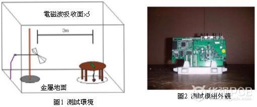 圖3是被測基板A的外觀,該基板為影像處理系統(tǒng)用電路主機板,動作頻率為27MHz與54MHz,電路基板內(nèi)建CPU、Sub CPU、FRASH,以及SDRAM×5、影像數(shù)據(jù)/數(shù)字轉(zhuǎn)換處理單元、影像輸出入單元,此外被測基板符合「VCCI規(guī)范等級B」的要求,測試上使用相同的電源基板(Board)與變壓器(Adapter)。
