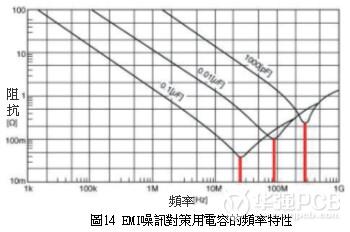 圖10~圖13是改變上述電容容量時的EMI噪訊測試結(jié)果,根據(jù)測試結(jié)果顯示,依照圖14的頻率范圍設(shè)置的大容量EMI噪訊對策用電容DuF,可以抑制低頻噪訊Level。雖然設(shè)置電容增加PCB的容量負載,不過為了要抑制噪訊,設(shè)置在各部位的電容頻率特性,卻可以發(fā)揮預(yù)期的EMI噪訊抑制效果。