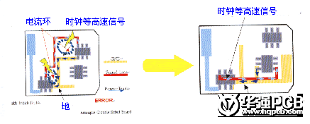 時鐘信號等高速信號網(wǎng)絡(luò),在多層的PCB走線的時候產(chǎn)生了閉環(huán)的結(jié)果,這樣的閉環(huán)結(jié)果將產(chǎn)生環(huán)形天線,增加EMI的輻射強(qiáng)度。