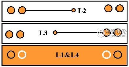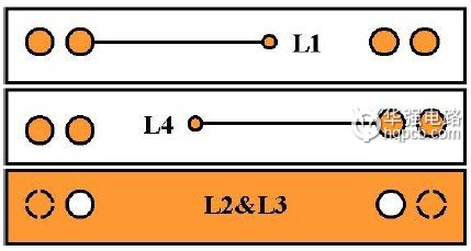 如客戶針對4層板,內(nèi)層(2,3層)線寬進(jìn)行阻抗之控制,注意阻抗線寬上下對應(yīng)層皆鋪設(shè)銅箔,其L2&L3 之阻抗線寬設(shè)計(jì)需措開不可重疊,避免影響阻抗值之測試,其阻抗條之設(shè)計(jì)如下: