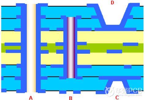為了讓有限的PCB面積,能放置更多更高性能的零件,除線路寬度愈細(xì)外,孔徑亦從DIP插孔孔徑1 mm縮小為SMD的0.6 mm,更進(jìn)一步縮小為0.4mm以下。但是仍會(huì)占用表面積,因而又有埋孔及盲孔的出現(xiàn),其定義如下:
