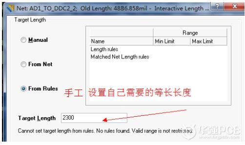 第二步:T+R 開(kāi)始繞等長(zhǎng),TAB 鍵調(diào)出等長(zhǎng)屬性設(shè)置框,如下圖: