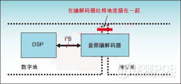 在高速視頻系統(tǒng)中,保持回路短的目的意味著視頻地不能被隔離。而必須被隔離的音頻地,絕不能在數(shù)據(jù)輸入點處短接到數(shù)字地上,如圖2所示。