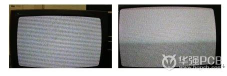 有些信號還產(chǎn)生引起串?dāng)_的高頻諧波。由于輻射的能量正比于信號的上升和下降時間,較慢的上升或下降時間引起的干擾將較小。圖6顯示出視頻干擾的實例,這些干擾可能由內(nèi)部時鐘的輻射所引起。在北美地區(qū)第二頻道中,18.432MHz的音頻時鐘的三次諧波,將產(chǎn)生如圖中左側(cè)所示的干擾。通過在音頻時鐘印制線上增加一個串聯(lián)電阻來放慢時鐘的上升和下降時間,減小了干擾,其結(jié)果如圖6中的右側(cè)所示。不過,設(shè)計師需要了解定時裕度,以便于將上升和下降沿降低到系統(tǒng)所允許的限度內(nèi)。